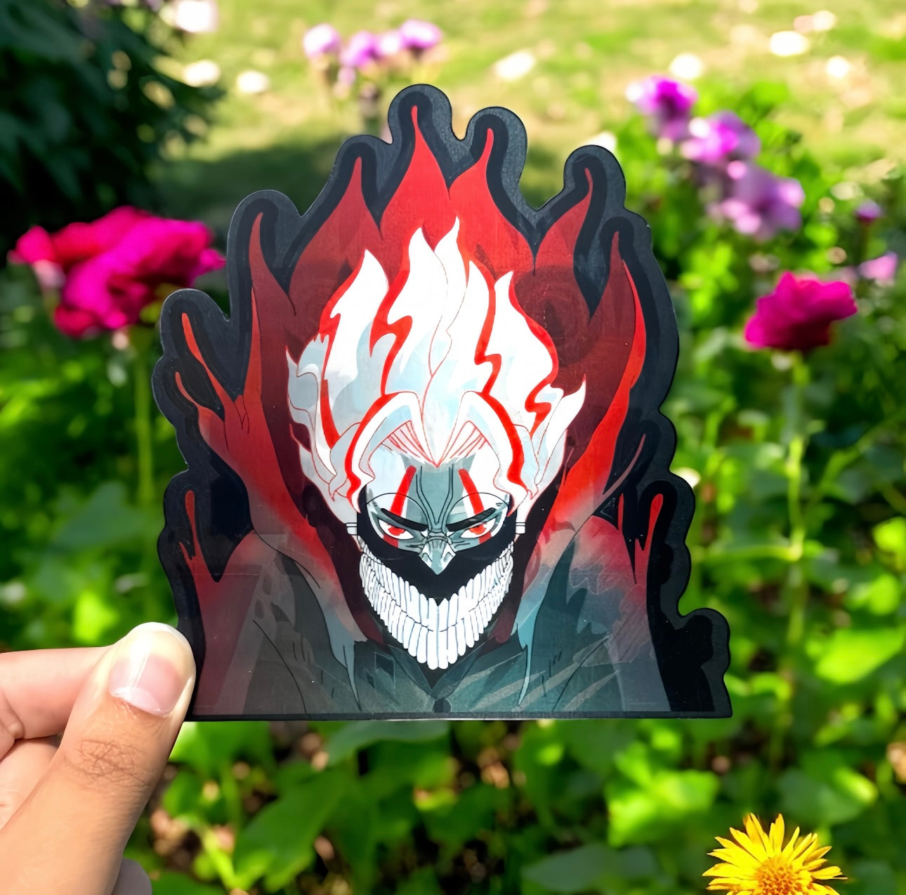 • Large Size – Measuring 6 x 5 inches, this sticker makes a bold statement with its eye-catching, dynamic anime design.